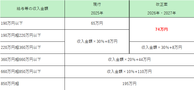 さらに、給与所得控除の最低保障額も5万円上乗せされます。