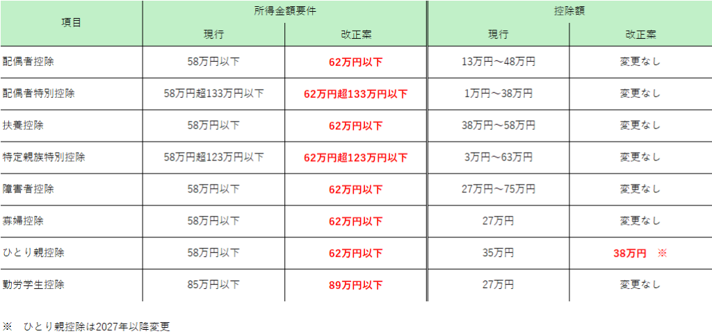 基礎控除(本則):58万円 → 62万円